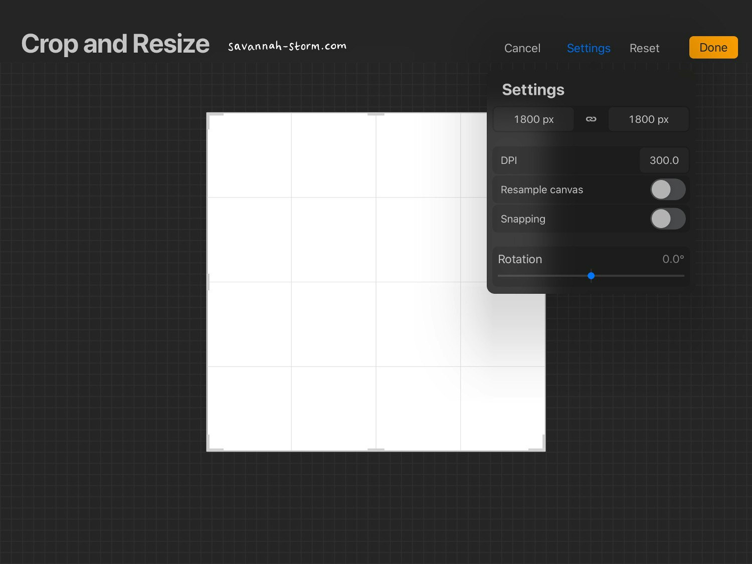 Step 1 - Open a new canvas, making sure it's square. Any size is fine, it just depends how large your elements are. I went for 1800px at first but later increased it to 2000px because my elements were larger than anticipated. Also consider at this stage your DPI, 300 for print is probably best as you can always reduce it later for on screen, but you can't increase it later or it'll just be blurry.